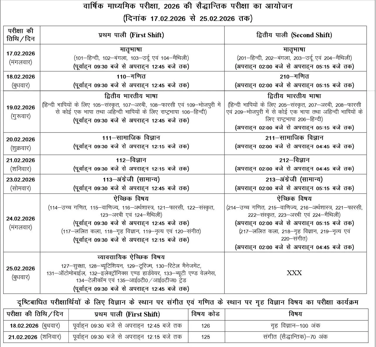 - मैट्रिक परीक्षा 2026 का रुटीन क्या है ?